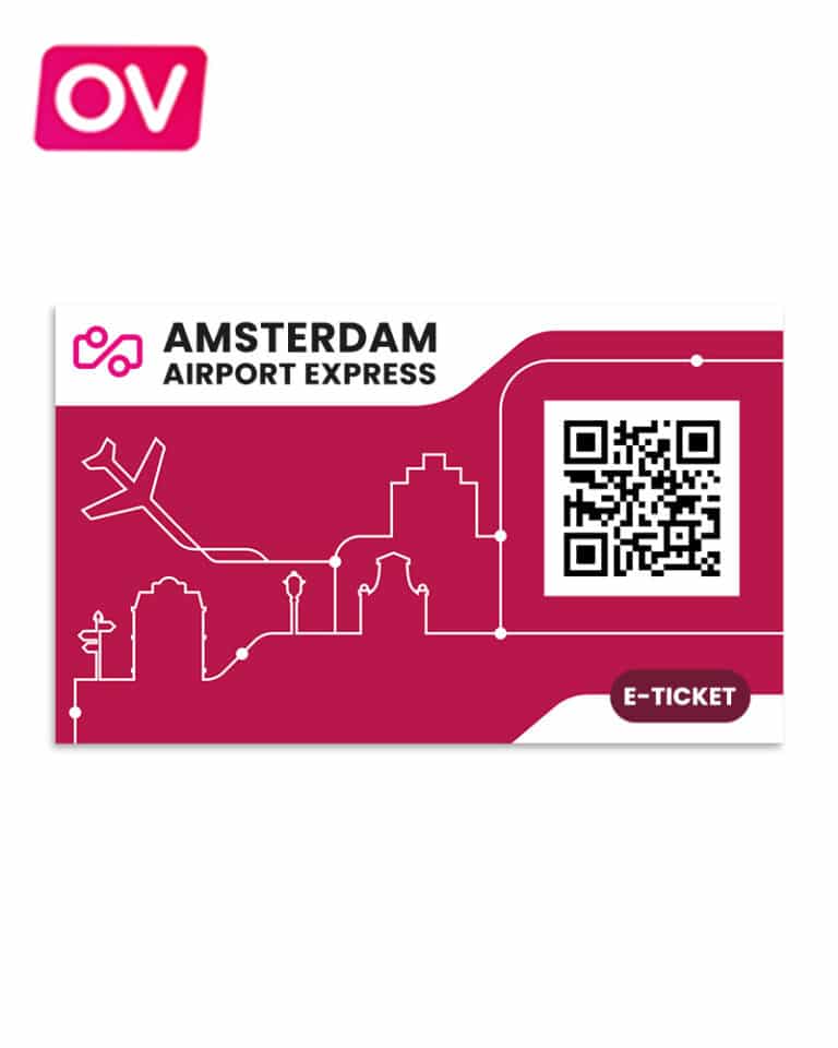 Het Amsterdam Airport Express is een E-ticket. Deze wordt per mail verstuurd en de QR-code dient gebruikt te worden bij het in- en uitchecken. Voor E-tickets gelden aanvullende producten en leveringsvoorwaarden.