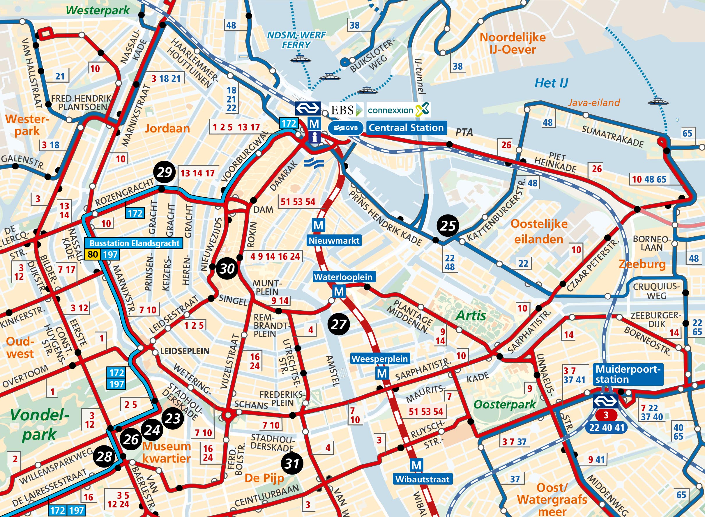 - Alle trams, bussen en metro’s van GVB, EBS, en Connexxion. NS Schiphol -Amsterdam.