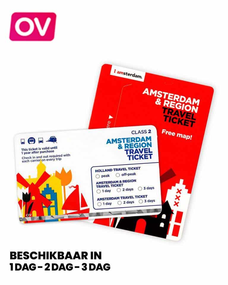 Met deze kaart kan jij onbeperkt reizen met bus, tram, trein en metro door Amsterdam en de regio, dag én nacht. Deze kaart is geldig bij GVB, streekvervoerders Connexxion en EBS en NS. Een super handige kaart voor een bezoekje aan Amsterdam en bijvoorbeeld Volendam, de Zaanse Schans of Haarlem.