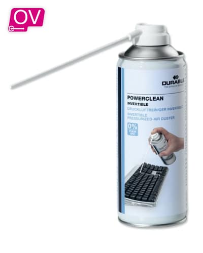 Durable Perslucht apparatuur Powerclean Standard verwijdert vuil en stof van gevoelige apparaten. Hij reinigt grondig en met hoge druk moeilijk bereikbare plekken. Denk aan laptops, toetsenborden, printers en foto-en video apparatuur. De Durable Perslucht is ook op zijn kop te gebruiken. CFK-vrij, Omkeerbaar en Ontvlambaar. De Durable Perslucht apparatuur POWERCLEAN is erg handig voor thuis en/of op kantoor waardoor jij jouw werkplek goed kan schoonhouden.