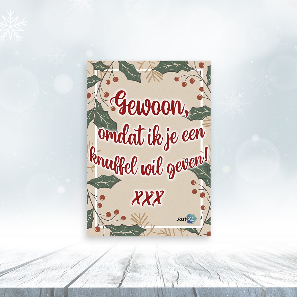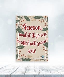 Stuur dit schattige Kerstknuffeltje en bedenk alvast hoe blij de persoon zal reageren op deze knuffel. Met het tekstkaartje: Gewoon, omdat ik je een knuffel wil geven! is alles gezegd. Het knuffeltje is ongeveer 8cm en uiteraard enorm schattig.