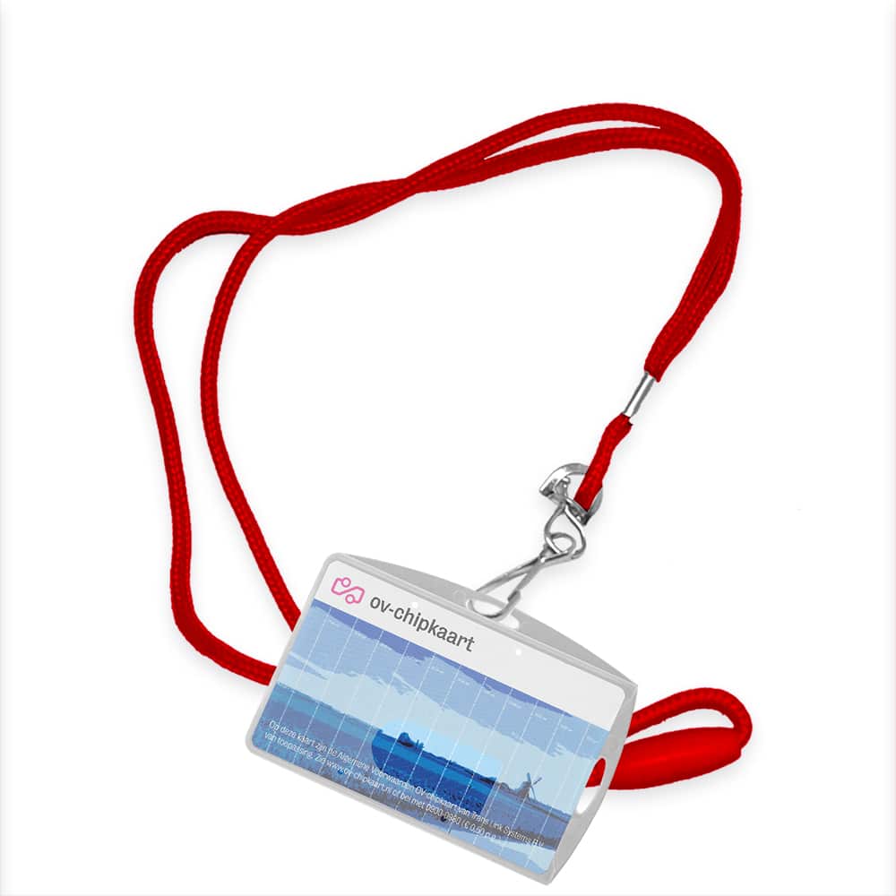 Dit draagkoord is vuurrood van kleur en is de wat langere variant waardoor hij soepel om de nek valt en waardoor uw pasje ook wat lager hangt. Het koord heeft een metaalkleurige skisluiting waar de OV-chipkaart hoes makkelijk aan bevestigd kan worden.