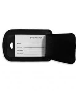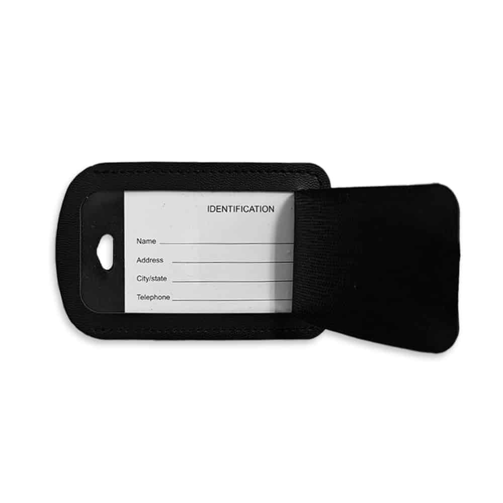 Super simpele OV-kofferlabel zwart van kunstleder. De OV-kofferlabel is 10cm lang en 6.5 cm breed, daarnaast komt er nog 4,5 cm bij voor het gespje.