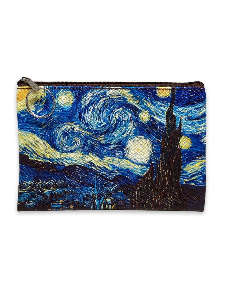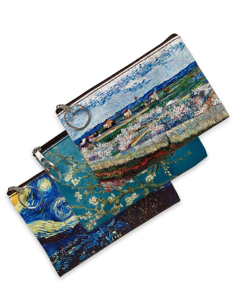 De portemonnees hebben herkenbare prints gebaseerd op drie bekende schilderijen van Vincent van Gogh:
