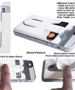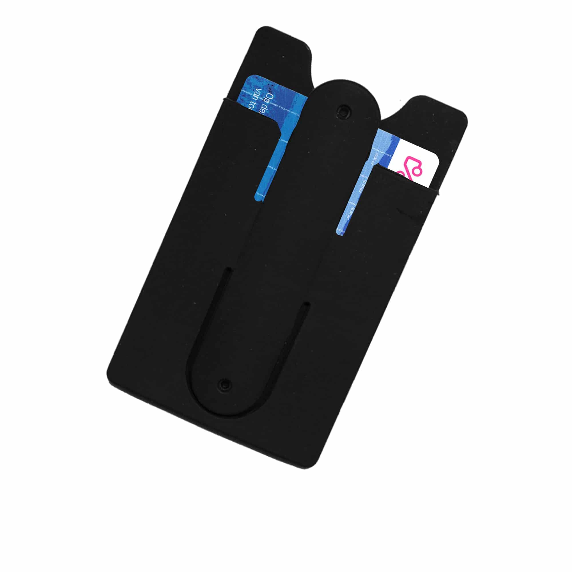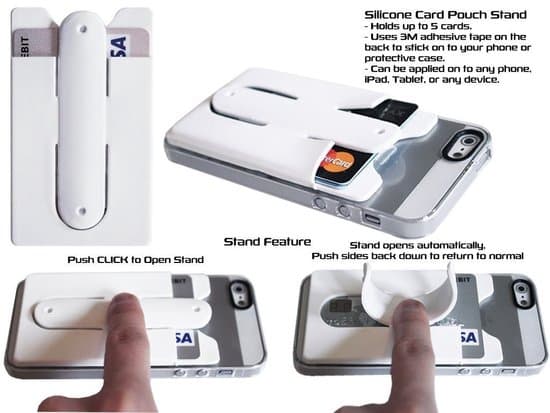 Deze flexibele pashouder heeft op de achterkant een extra buigbare strip. Hierdoor is het mogelijk is om je telefoon rechtop te zetten. Het voordeel is dat je dan makkelijk filmpjes kunt kijken zonder je telefoon steeds vast te houden. Door in het midden van het bandje te drukken klapt de telefoonstandaard uit. Daarna kun je je telefoon eenvoudig ergens neerzetten.