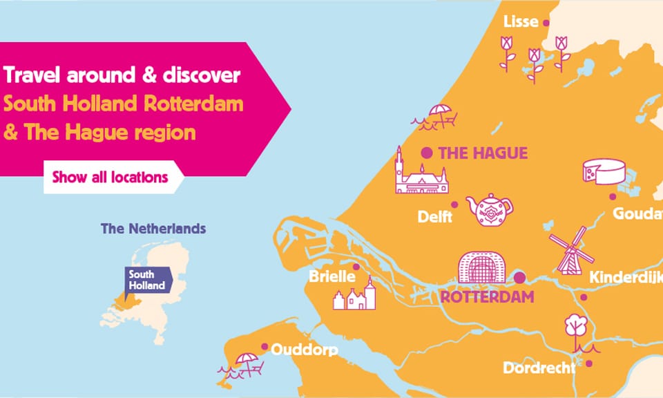 Het openbaar vervoer in de regio Rotterdam/Den Haag is uitstekend. De bus, tram, metro en waterbus brengen je naar alle populaire plekken in deze regio zoals de historische steden Delft, Dordrecht, Leiden en Gouda. Maar vergeet vooral de stranden aan de Noordkust en populaire bestemmingen zoals Kinderdijk en Keukenhof niet!
